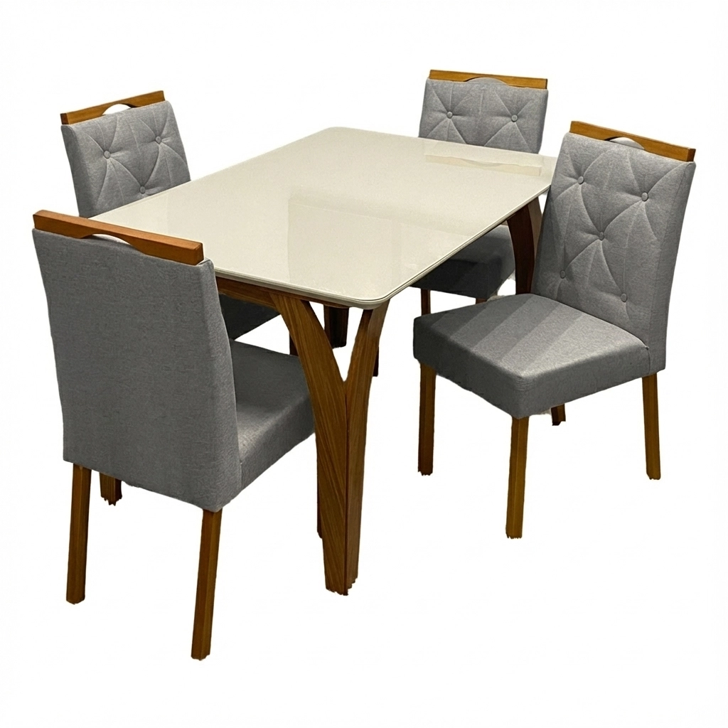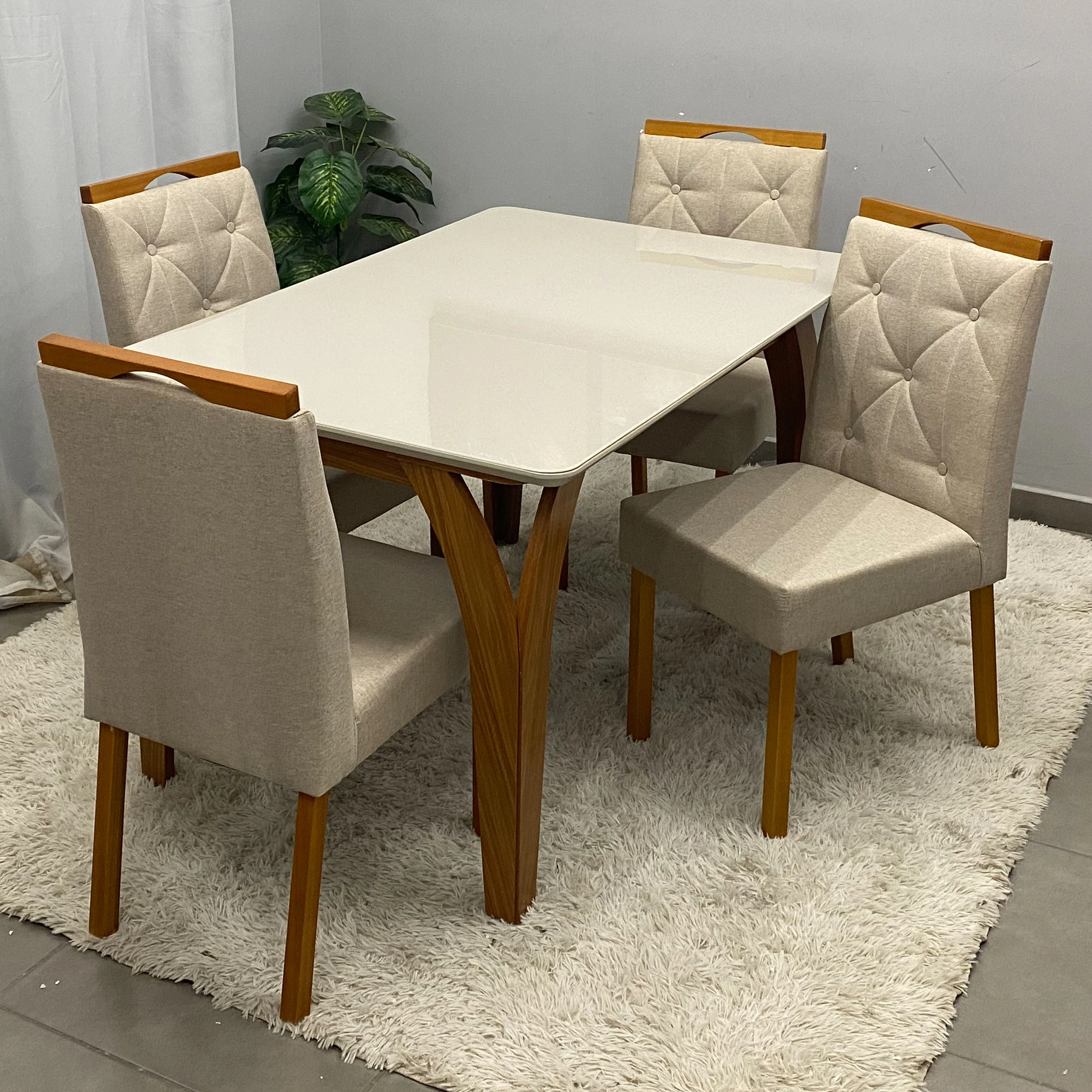 Mesa de Jantar Agata 135x90cm com Vidro e 4 Cadeiras Jasmim em Linho |