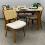 Seja o primeiro a avaliar “Mesa de Jantar Agata 135x90cm com Vidro e 4 Cadeiras Livia em Linho Madeira Lj Móveis”