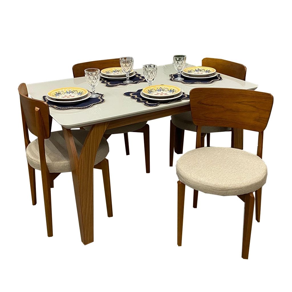 Mesa de Jantar Agata 135x90cm com Vidro e 4 Cadeiras Maldivas em Linho Madeira Lj Móveis