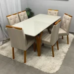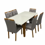 Seja o primeiro a avaliar “Mesa de Jantar Agata 180x90cm com Vidro e 6 Cadeiras Jasmim em Linho Estofadas Lj Móveis”