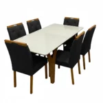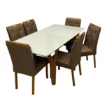 Mesa de Jantar Agata 180x90cm com Vidro e 6 Cadeiras Jasmim em Veludo |