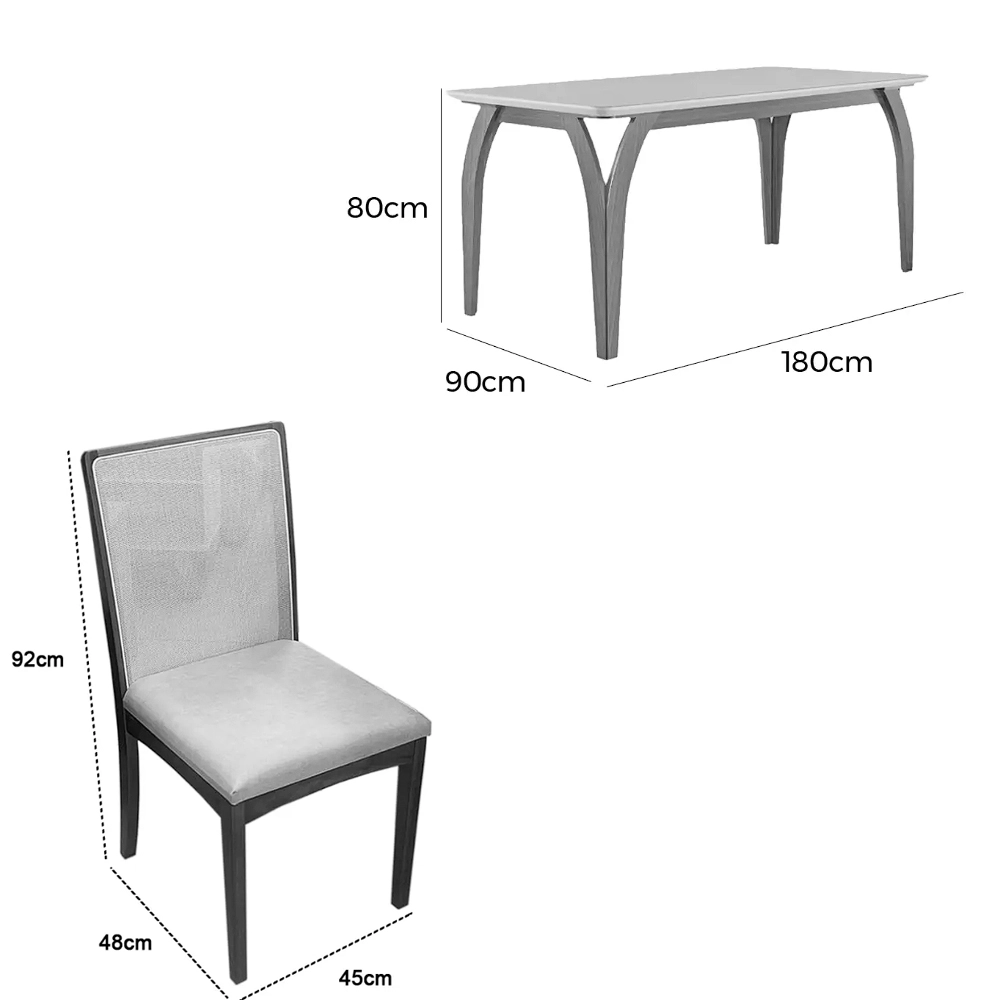 | Modelo | Mesa de Jantar Agata 180x90cm com Vidro e 6 Cadeiras Lara Kappesberg em Linho |