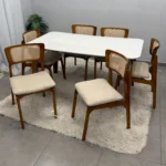 Mesa de Jantar Agata 180x90cm com Vidro e 6 Cadeiras New Viena em Linho |