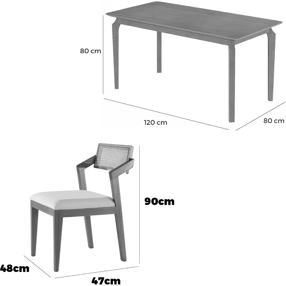 Mesa de Jantar Alegra 120x80cm sem Vidro e 4 Cadeiras Berlim Madeira em Linho JCM