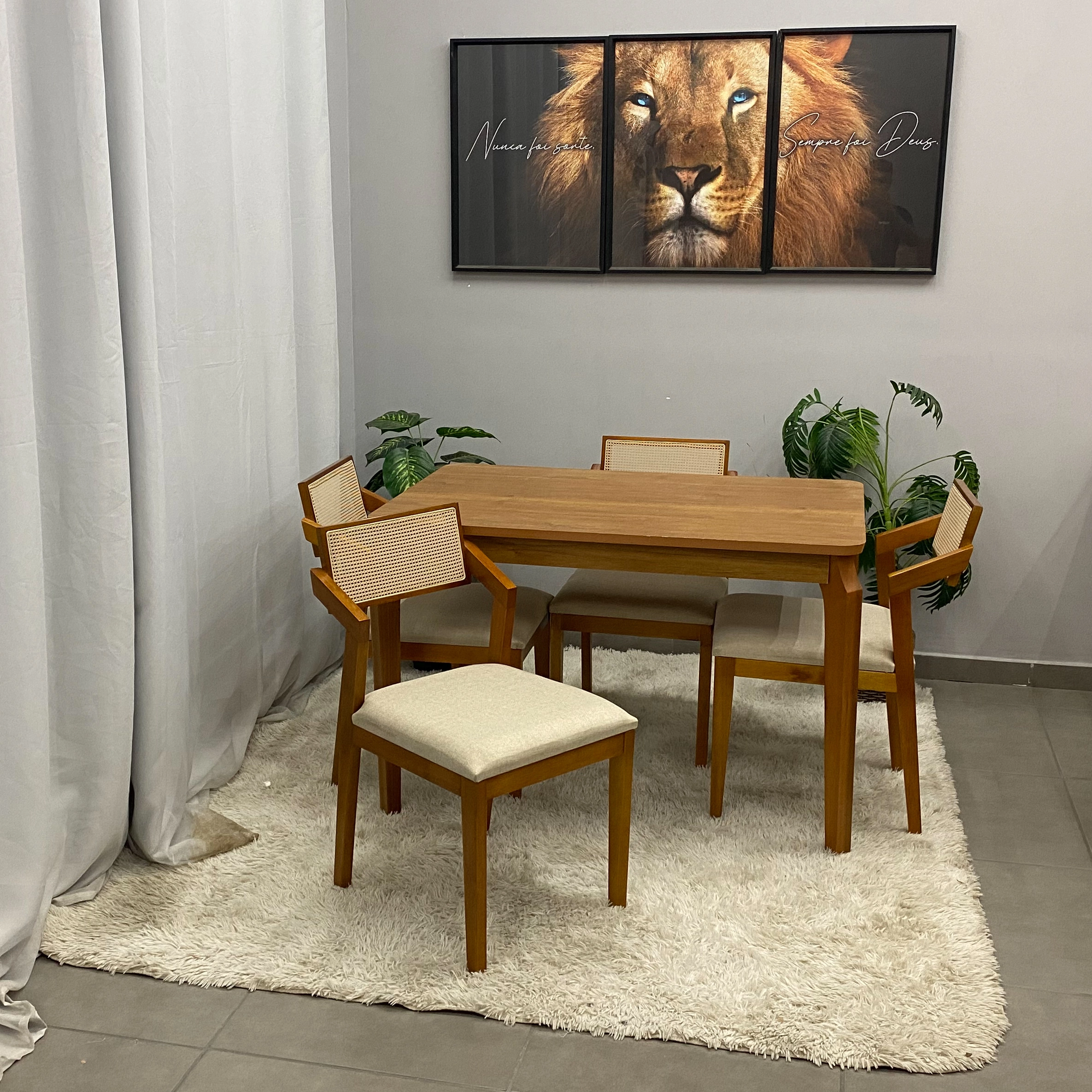| Modelo | Mesa de Jantar Alegra 120x80cm Sem Vidro e 4 Cadeiras Berlim Madeira em Linho |