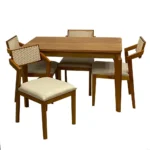 A Mesa de Jantar Alegra 120x80cm sem Vidro e 4 Cadeiras Berlim Madeira em Linho JCM é a escolha ideal para quem busca aliar funcionalidade e elegância em espaços compactos. O conjunto apresenta uma mesa de 120x80cm com acabamento amadeirado natural, acompanhada por quatro cadeiras robustas produzidas em madeira de alta qualidade. O destaque fica para o conforto das cadeiras Berlim, que oferecem um toque sofisticado e aconchegante para as refeições em família ou momentos de recepção.