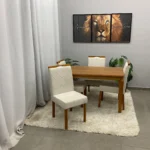 A Mesa de Jantar Alegra 120x80cm sem Vidro e 4 Cadeiras California em Veludo Estofadas JCM e acabamento amadeirado sem vidro, é a escolha ideal para quem busca otimizar o espaço com elegância e funcionalidade. O conjunto acompanha 4 cadeiras Califórnia, que contam com design ergonômico e revestimento em tecido Veludo estofado, proporcionando um toque sofisticado e máximo conforto para as refeições diárias. Com uma estrutura robusta e estética atemporal, este conjunto se adapta facilmente a diversos estilos de decoração, transformando sua sala de jantar em um ambiente acolhedor e convidativo para receber amigos e familiares.