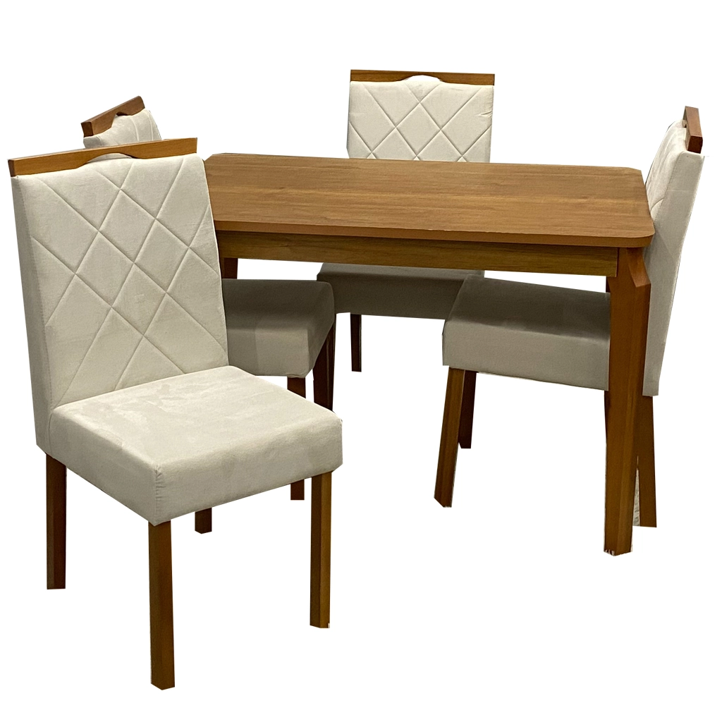 Mesa de Jantar Alegra 120x80cm Sem Vidro e 4 Cadeiras California em Veludo |