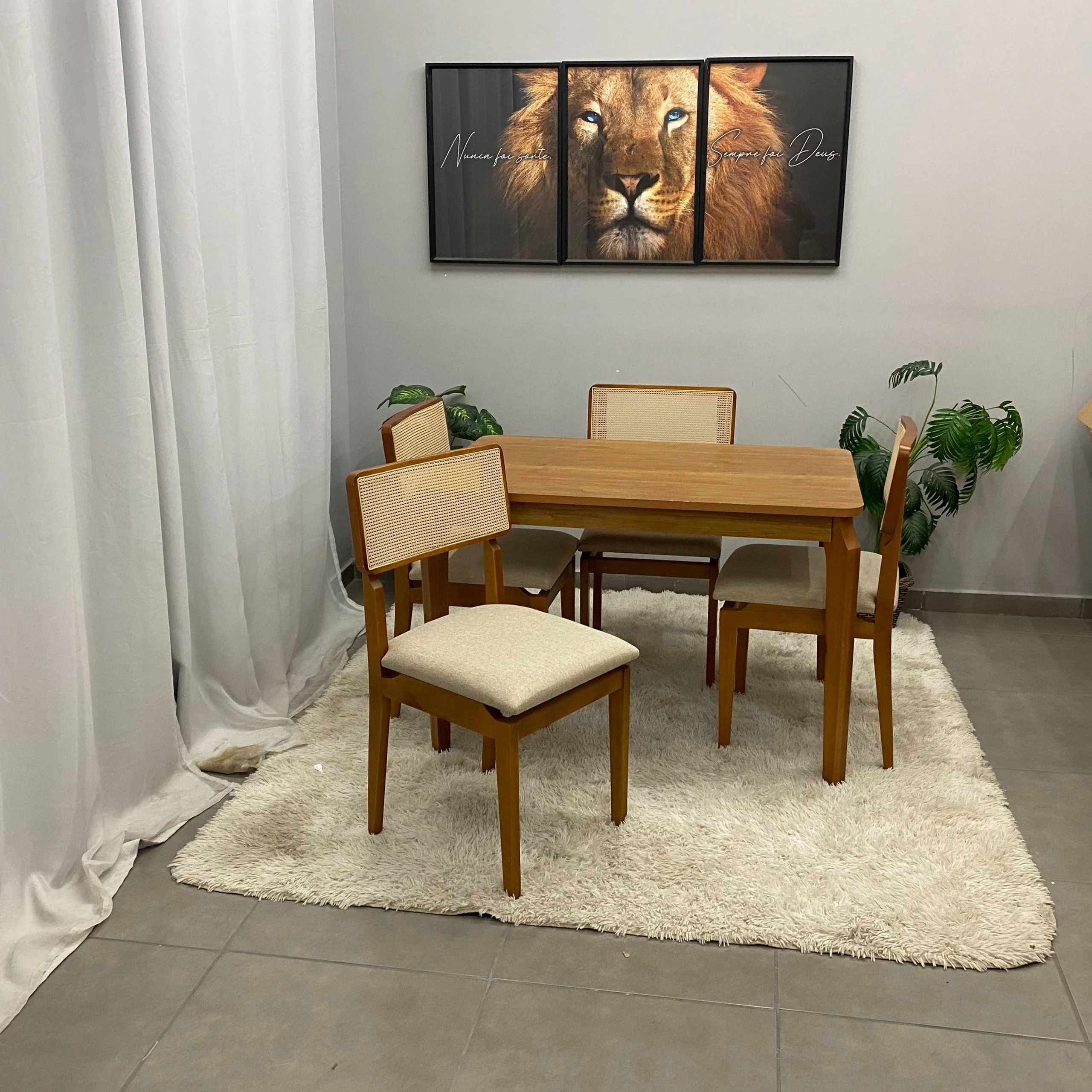 Mesa de Jantar Alegra 120x80cm sem Vidro e 4 Cadeiras Canada em Linho Madeira JCM
