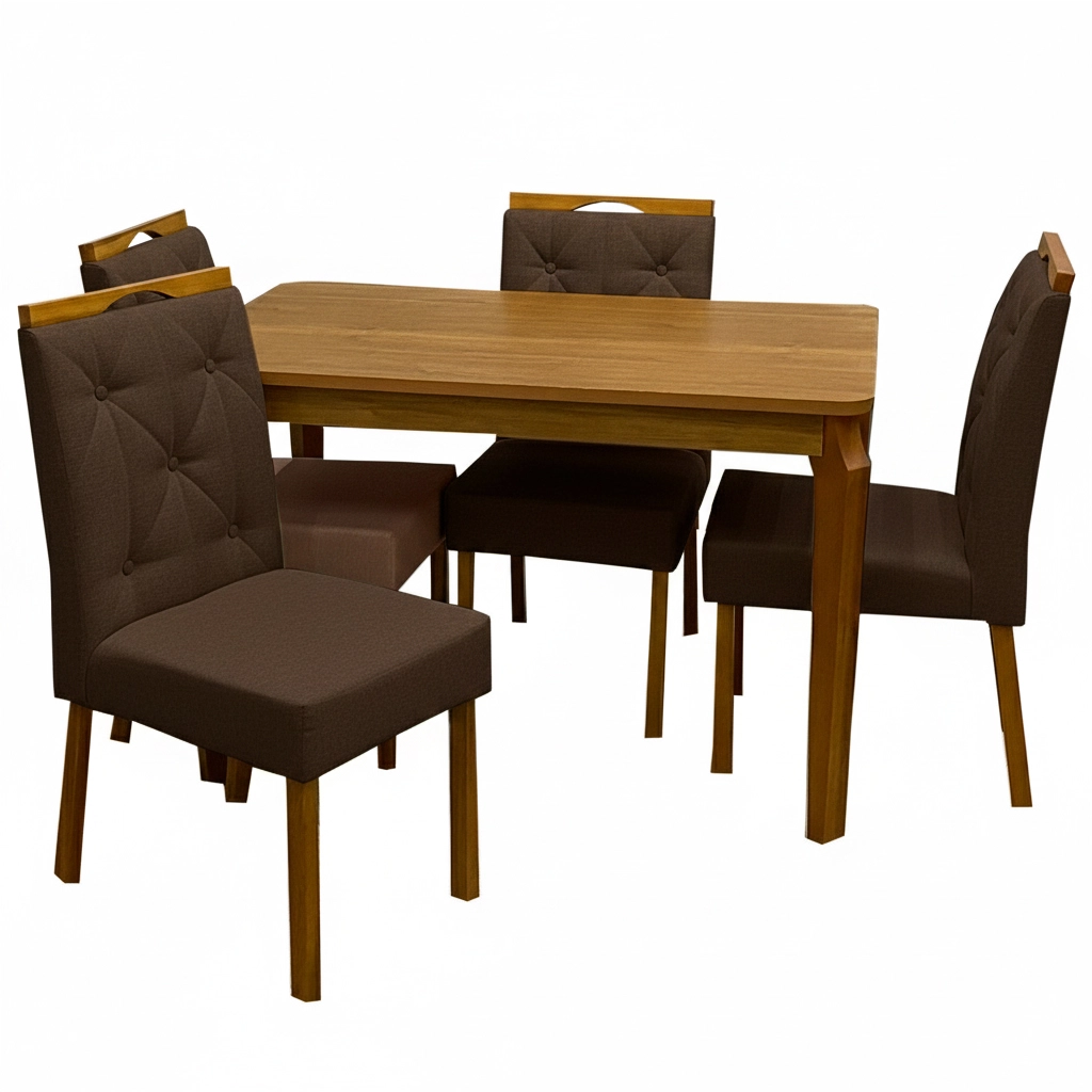 Mesa de Jantar Alegra 120x80cm Sem Vidro e 4 Cadeiras Jasmim em Veludo Estofadas Jcm