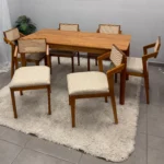 A Mesa de Jantar Alegra 180x90cm sem Vidro e 6 Cadeiras Berlim Madeira em Linho JCM é a escolha ideal para quem busca aliar funcionalidade e elegância em espaços compactos. O conjunto apresenta acabamento amadeirado natural, acompanhada por seis cadeiras robustas produzidas em madeira de alta qualidade. O destaque fica para o conforto das cadeiras Berlim, que oferecem um toque sofisticado e aconchegante para as refeições em família ou momentos de recepção.
