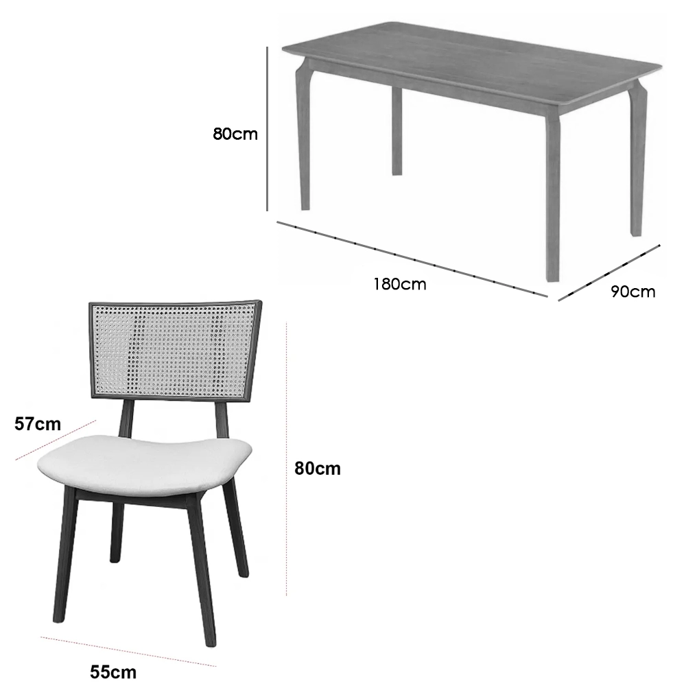 | Modelo | Mesa de Jantar Alegra 180x90cm Sem Vidro e 6 Cadeiras Livia em Linho |