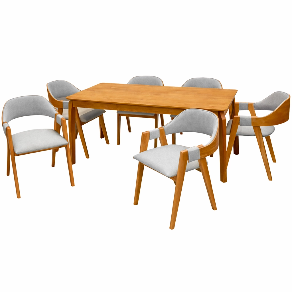 Mesa de Jantar Alegra 180x90cm sem Vidro e 6 Cadeiras Perola em Linho Madeira JCM