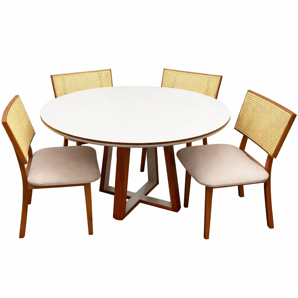 Mesa de Jantar Atlanta 100cm Redonda com Vidro e 4 Cadeiras Diamante em Linho Madeira Minas Plac