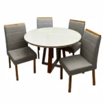 A Mesa de Jantar Atlanta 100cm Redonda com Vidro e 4 Cadeiras Giulia em Veludo Estofadas Minas Plac combina sofisticação e funcionalidade, apresentando um tampo redondo de com vidro que amplia e ilumina o ambiente. O conjunto acompanha 4 cadeiras Giulia, que oferecem alto conforto com estofamento em tecido Veludo de toque agradável e design ergonômico. Fabricado pela Minas Plac, o conjunto utiliza madeira de alta qualidade, garantindo durabilidade e estabilidade para o uso diário. Seu estilo contemporâneo adapta-se perfeitamente a salas de jantar ou cozinhas compactas, unindo a beleza da madeira com a modernidade do vidro. É a escolha ideal para quem busca um móvel elegante, resistente e capaz de proporcionar momentos memoráveis em família.