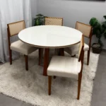 A Mesa de Jantar Atlanta 100cm Redonda com Vidro e 4 Cadeiras Grecia em Linho Madeira Minas Plac combina sofisticação e funcionalidade, apresentando um tampo redondo de com vidro que amplia e ilumina o ambiente. O conjunto acompanha 4 cadeiras Grecia, que oferecem alto conforto com estofamento em tecido linho de toque agradável e design ergonômico. Fabricado pela Minas Plac, o conjunto utiliza madeira de alta qualidade, garantindo durabilidade e estabilidade para o uso diário. Seu estilo contemporâneo adapta-se perfeitamente a salas de jantar ou cozinhas compactas, unindo a beleza da madeira com a modernidade do vidro. É a escolha ideal para quem busca um móvel elegante, resistente e capaz de proporcionar momentos memoráveis em família.
