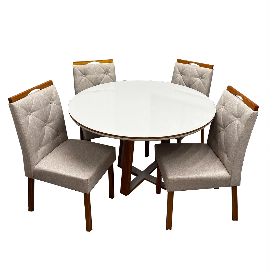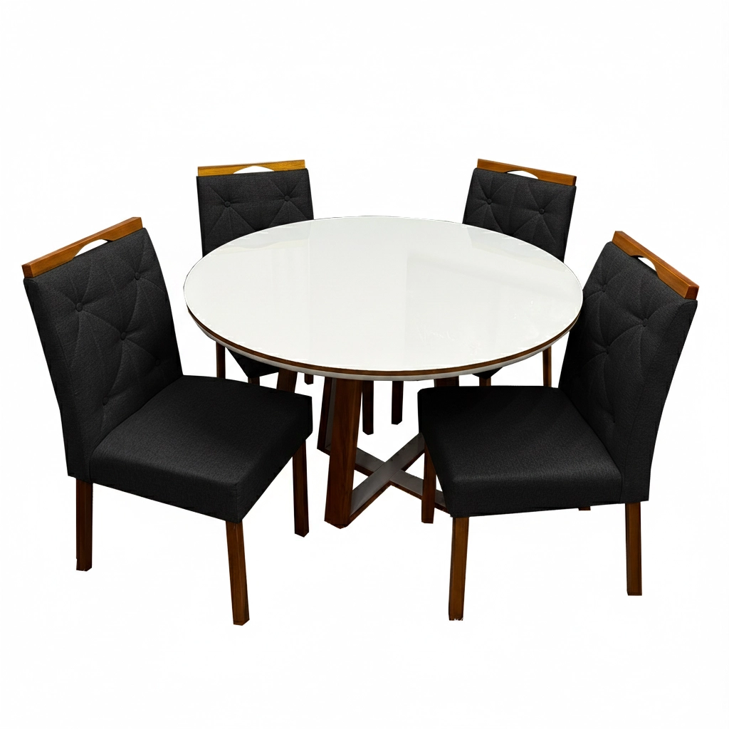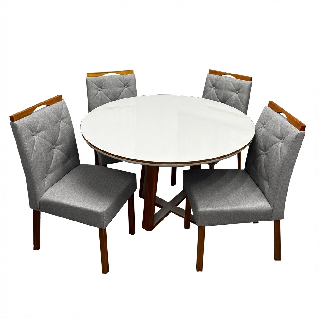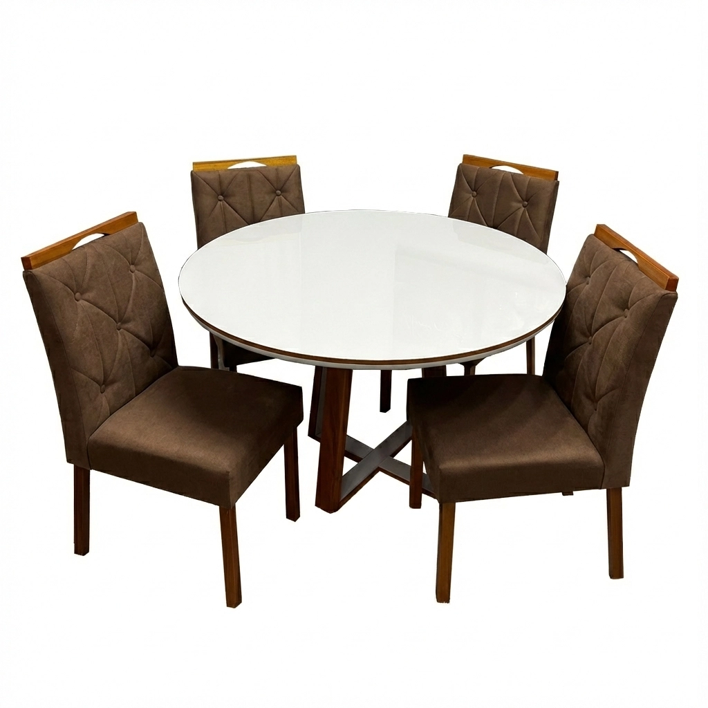 Mesa de Jantar Atlanta 100cm Redonda com Vidro e 4 Cadeiras Jasmim em Veludo |