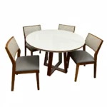 Mesa de Jantar Atlanta 100cm Redonda com Vidro e 4 Cadeiras Oiti em Linho |