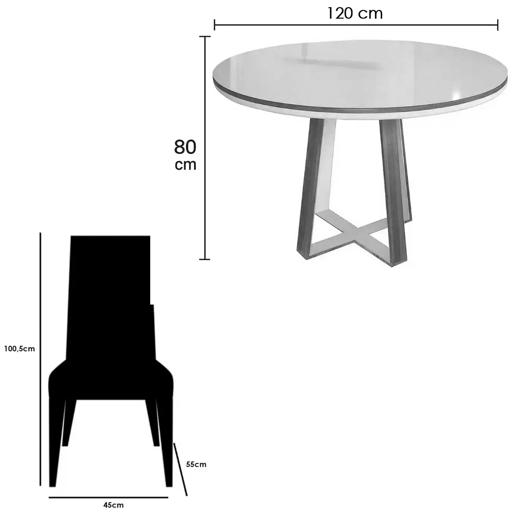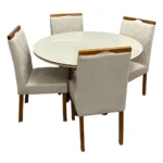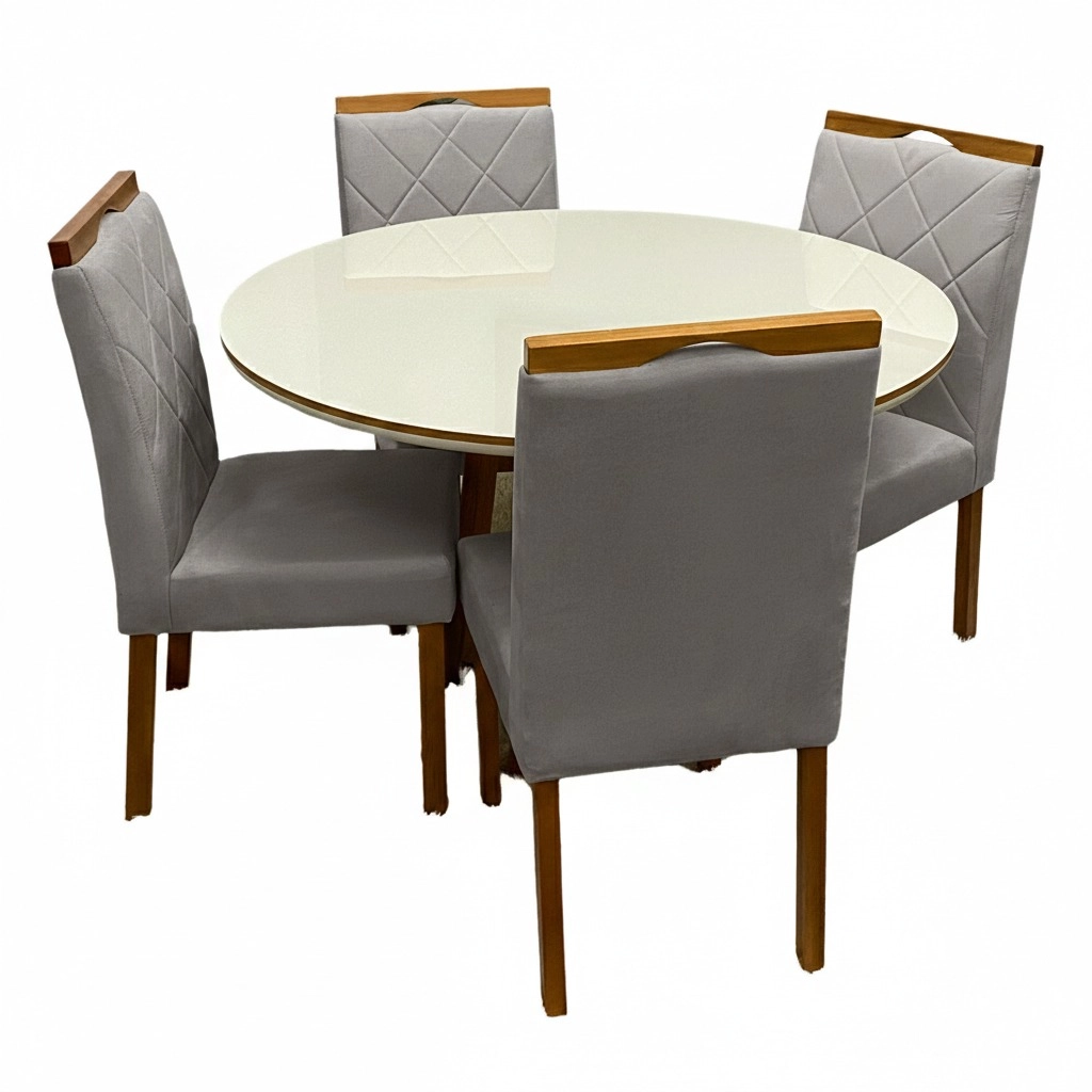 Mesa de Jantar Atlanta 120cm Redonda com Vidro e 4 Cadeiras California em Linho |