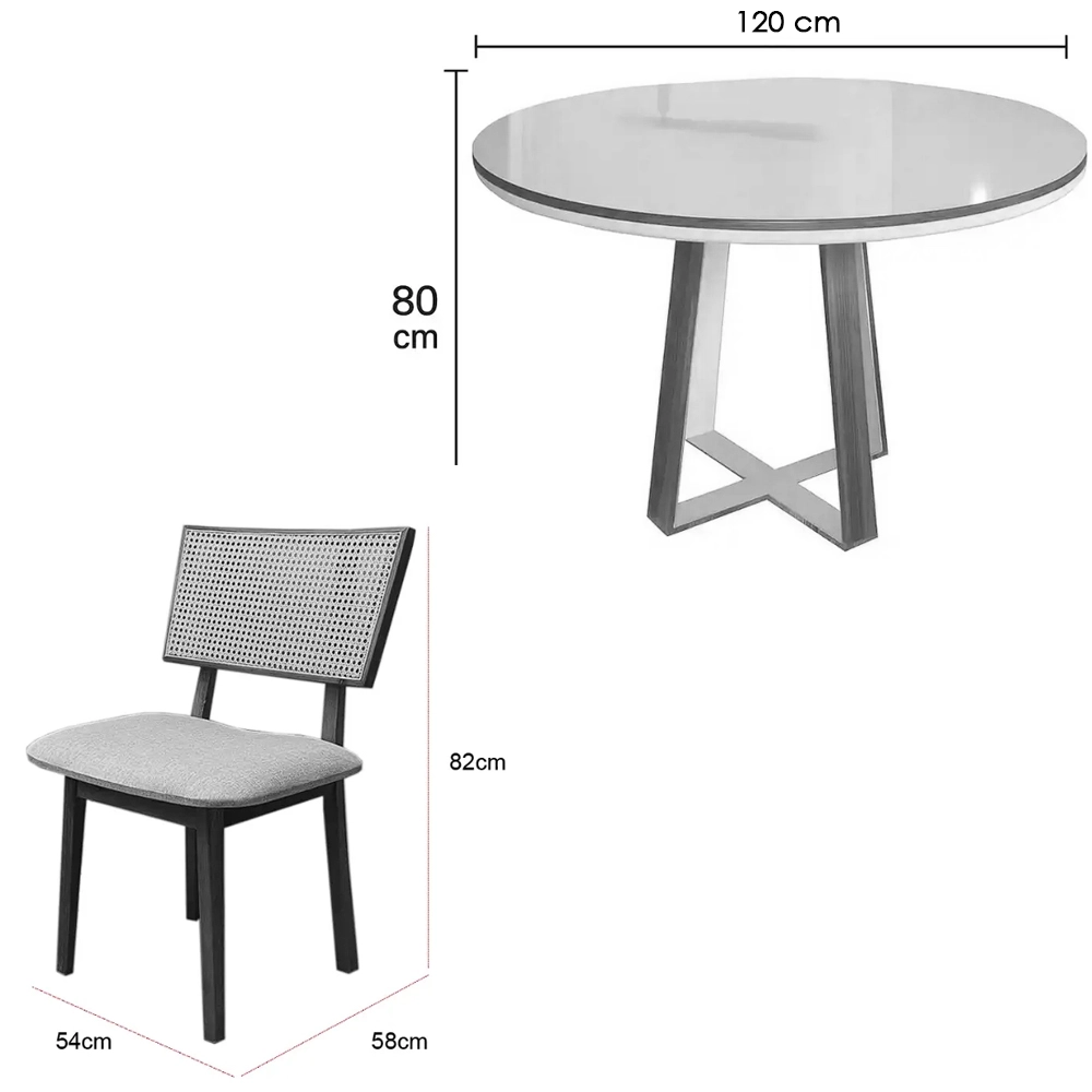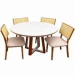Seja o primeiro a avaliar “Mesa de Jantar Atlanta 120cm Redonda com Vidro e 4 Cadeiras Diamante em Linho Madeira Minas Plac”