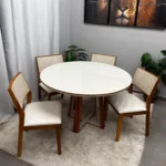 A Mesa de Jantar Atlanta 120cm Redonda com Vidro e 4 Cadeiras Oiti em Linho Madeira Minas Plac combina sofisticação e funcionalidade, apresentando um tampo redondo de com vidro que amplia e ilumina o ambiente. O conjunto acompanha 4 cadeiras Oiti, que oferecem alto conforto com estofamento em tecido Linho de toque agradável e design ergonômico. Fabricado pela Minas Plac, o conjunto utiliza madeira de alta qualidade, garantindo durabilidade e estabilidade para o uso diário. Seu estilo contemporâneo adapta-se perfeitamente a salas de jantar ou cozinhas compactas, unindo a beleza da madeira com a modernidade do vidro. É a escolha ideal para quem busca um móvel elegante, resistente e capaz de proporcionar momentos memoráveis em família.