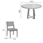 Mesa de Jantar Atlanta 120cm Redonda com Vidro e 4 Cadeiras Oiti em Linho |