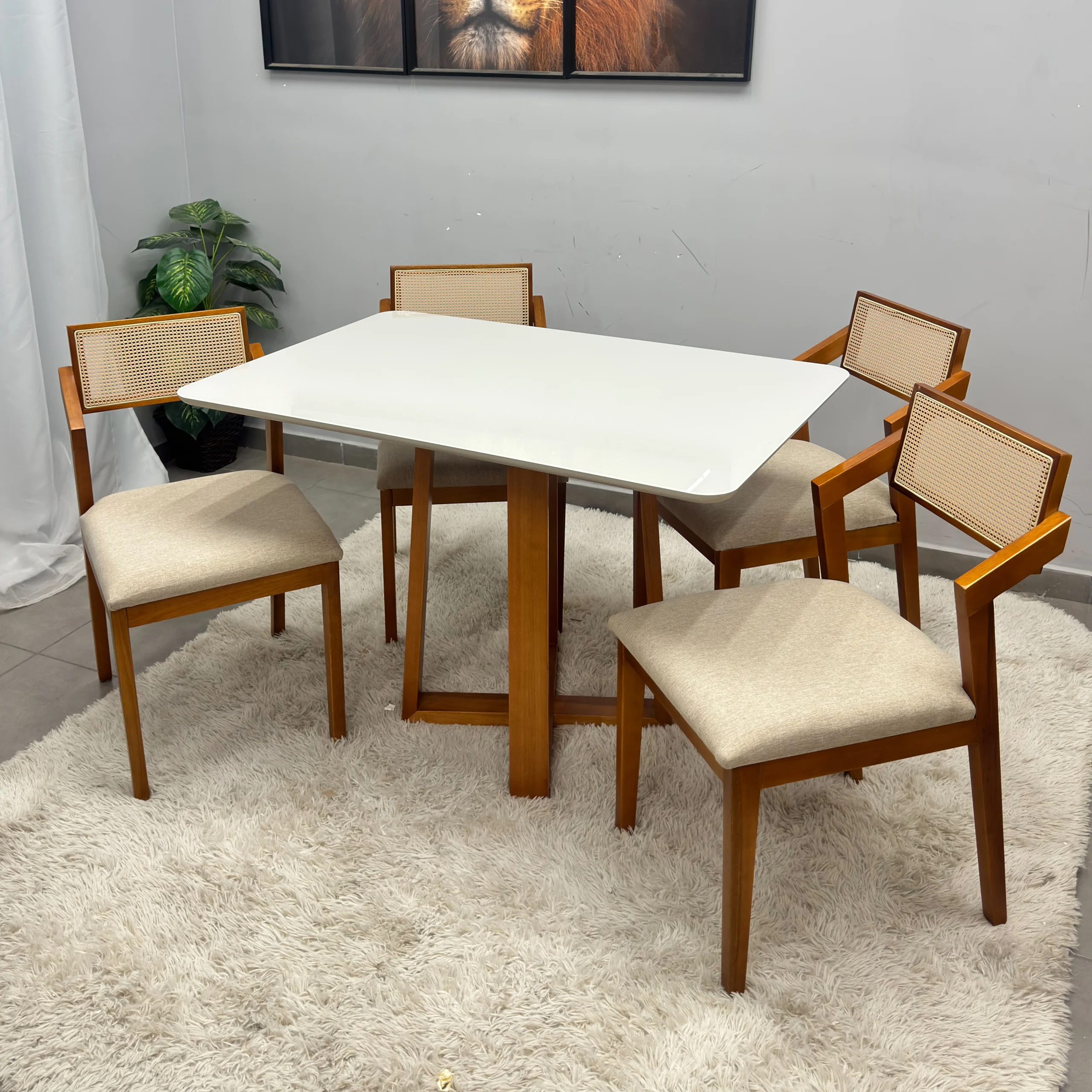Seja o primeiro a avaliar “Mesa de Jantar Bali 120x90cm com Vidro e 4 Cadeiras Berlim Hr em Linho Madeira Minas Plac” Cancelar resposta