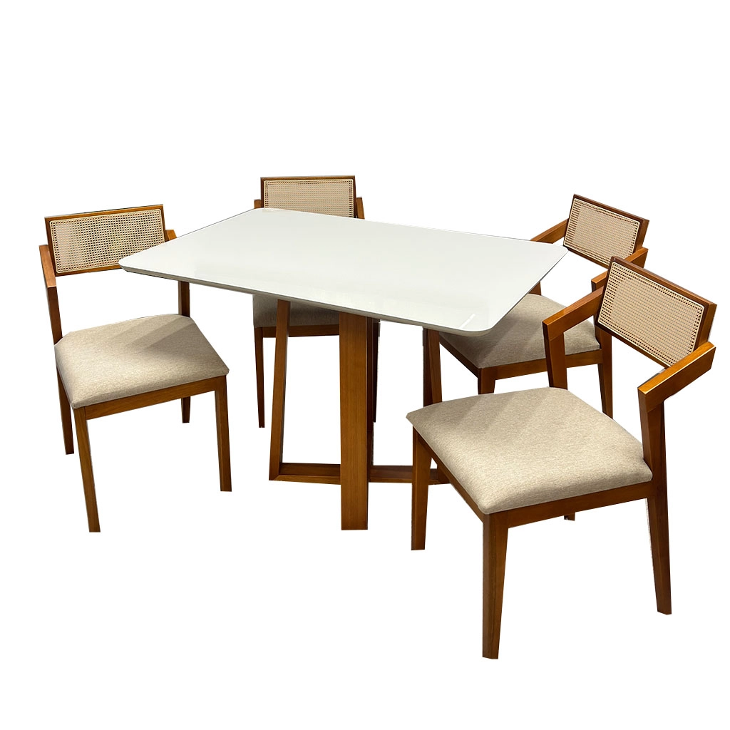 | Modelo | Mesa de Jantar Bali 120x90cm com Vidro e 4 Cadeiras Berlim HR em Linho |