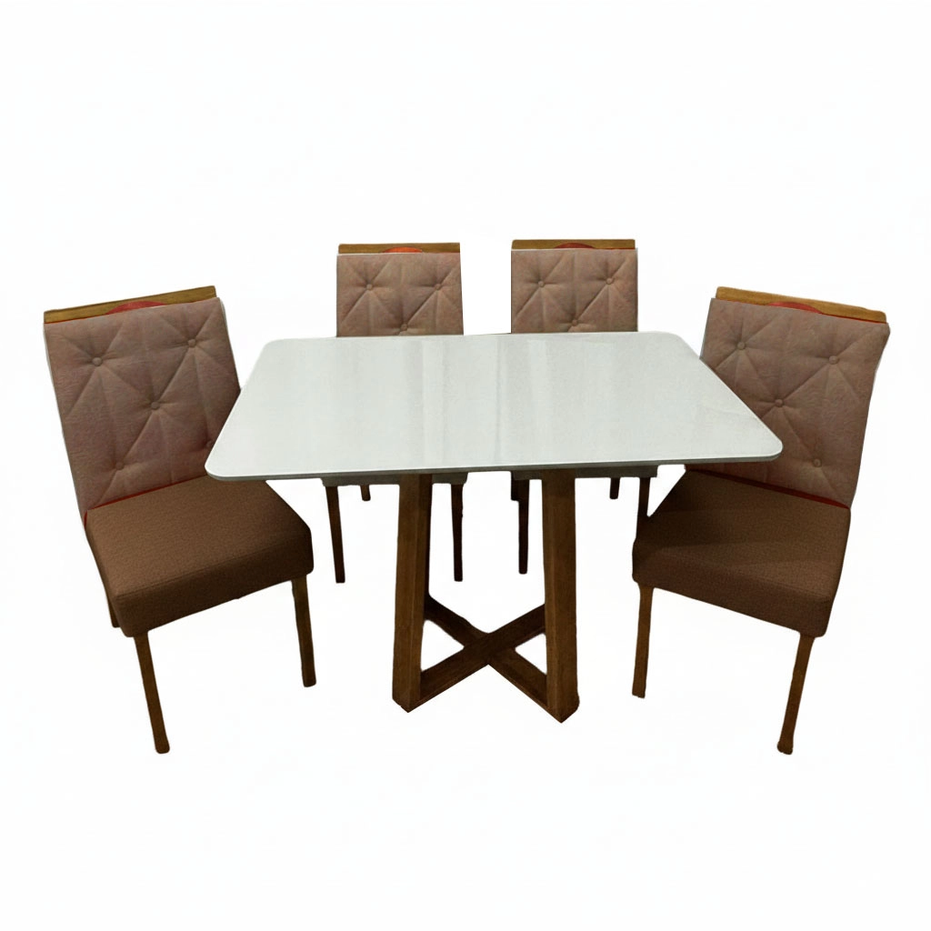 | Modelo | Mesa de Jantar Bali 120x90cm com Vidro e 4 Cadeiras Jasmim em Veludo Estofadas Minas Plac |