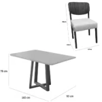 | Modelo | Mesa de Jantar Bali 160x90cm com Vidro e 6 Cadeiras Barcelona em Linho |