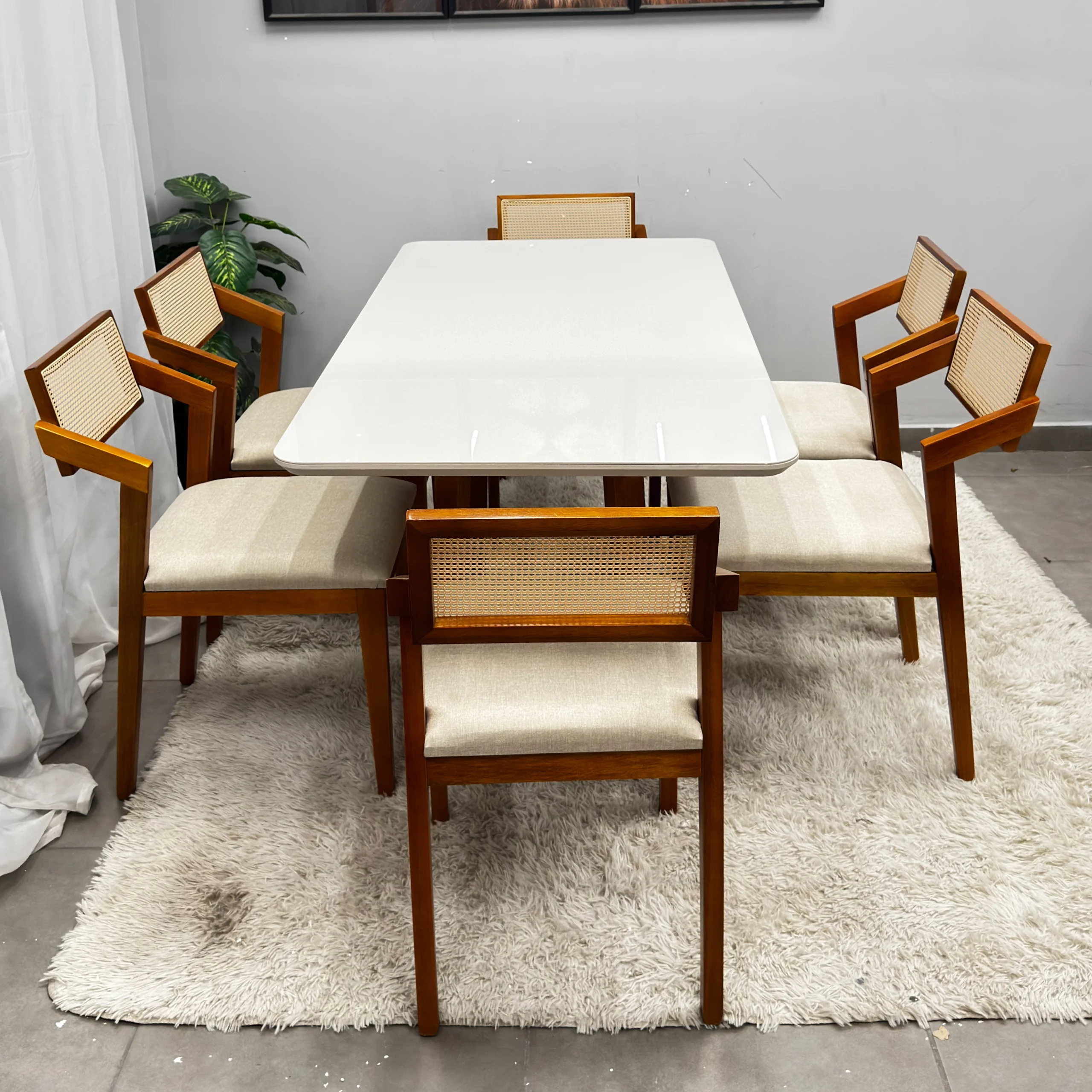 Seja o primeiro a avaliar “Mesa de Jantar Bali 160x90cm com Vidro e 6 Cadeiras Berlim Hr em Linho Madeira Minas Plac” Cancelar resposta