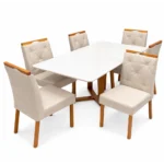 | Modelo | Mesa de Jantar Bali 160x90cm com Vidro e 6 Cadeiras Jasmim em Linho Estofadas Minas Plac |