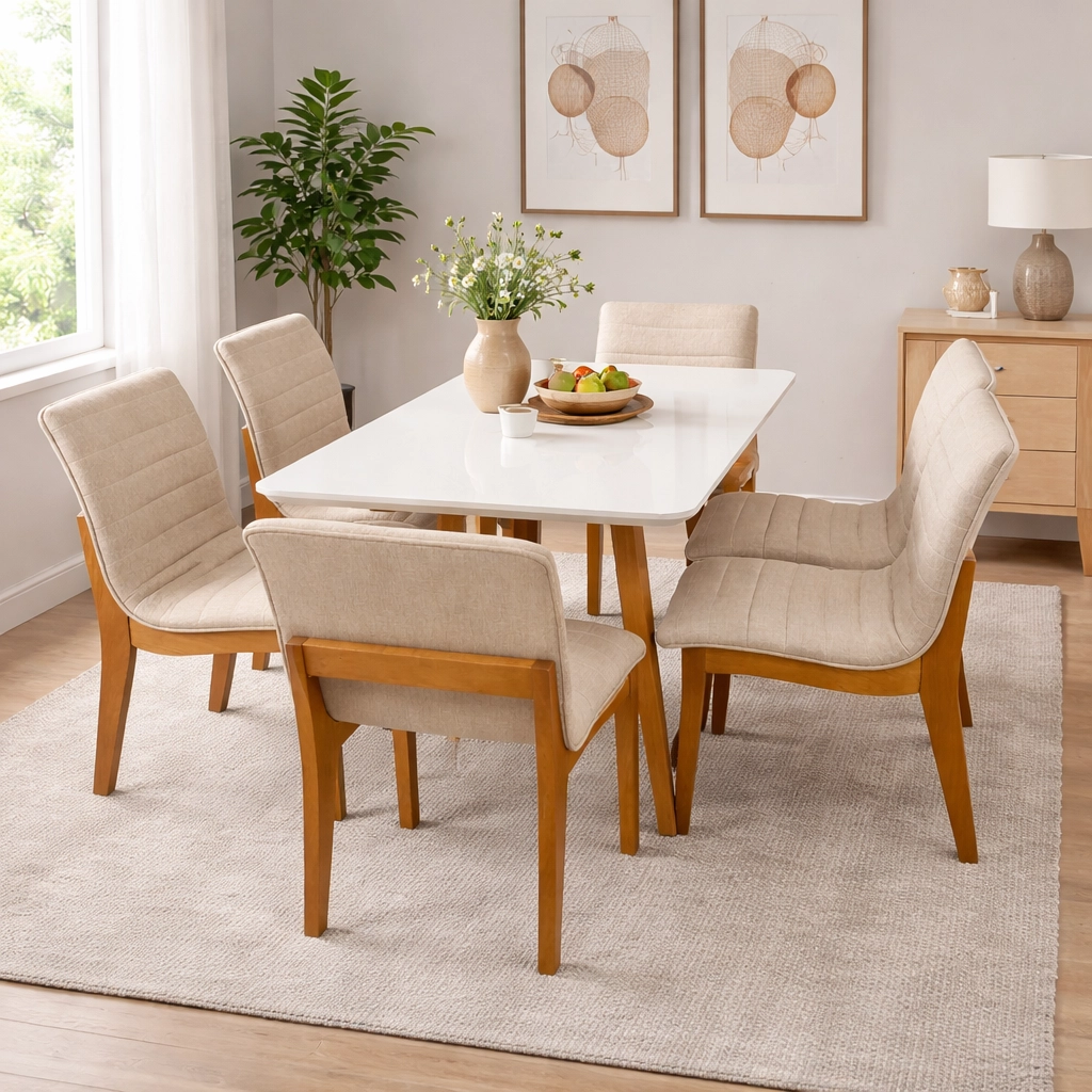 Seja o primeiro a avaliar “Mesa de Jantar Bali 160x90cm com Vidro e 6 Cadeiras Sofia em Linho Estofadas Minas Plac” Cancelar resposta
