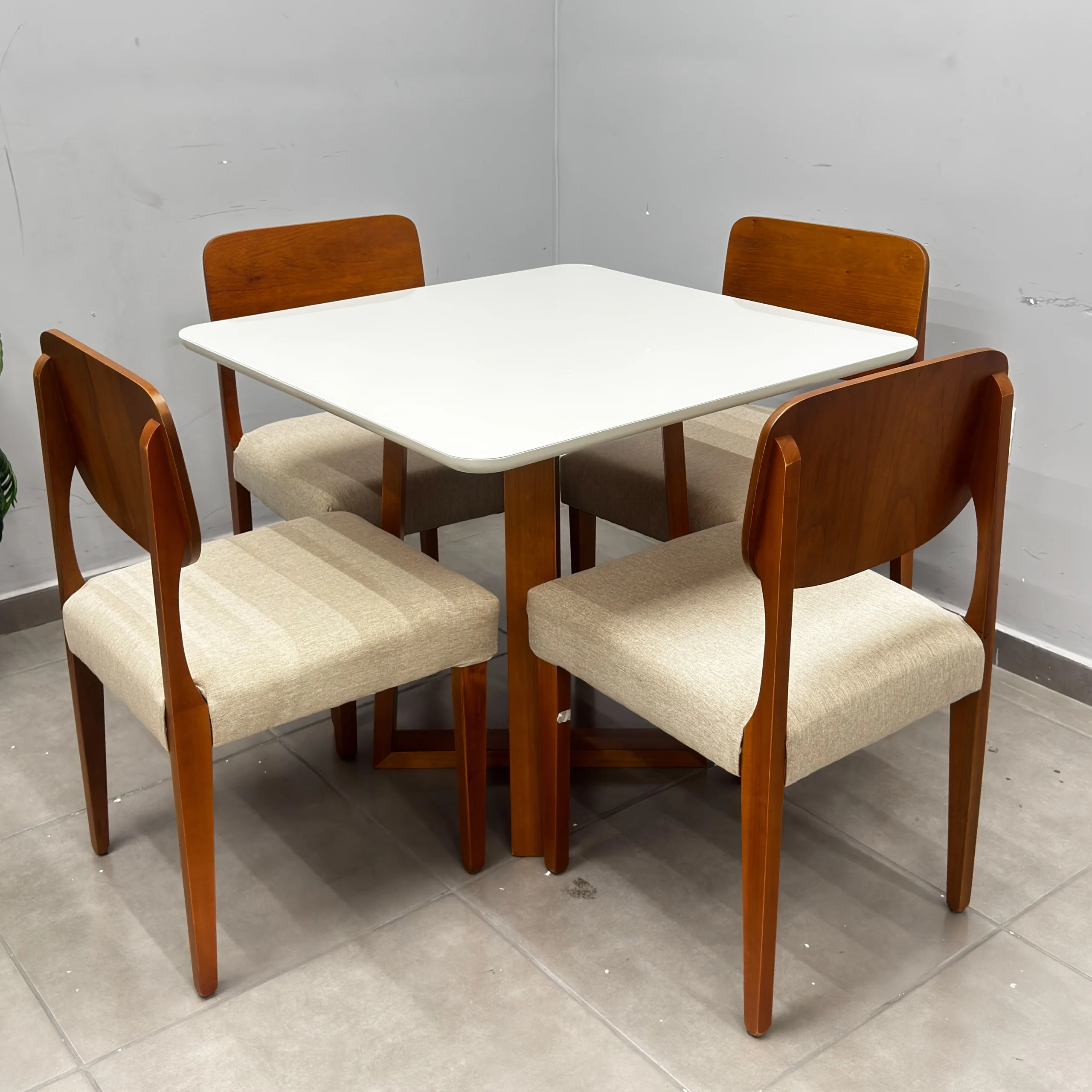 Seja o primeiro a avaliar “Mesa de Jantar Bali 90x90cm com Vidro e 4 Cadeiras Barcelona em Linho Madeira Minas Plac” Cancelar resposta