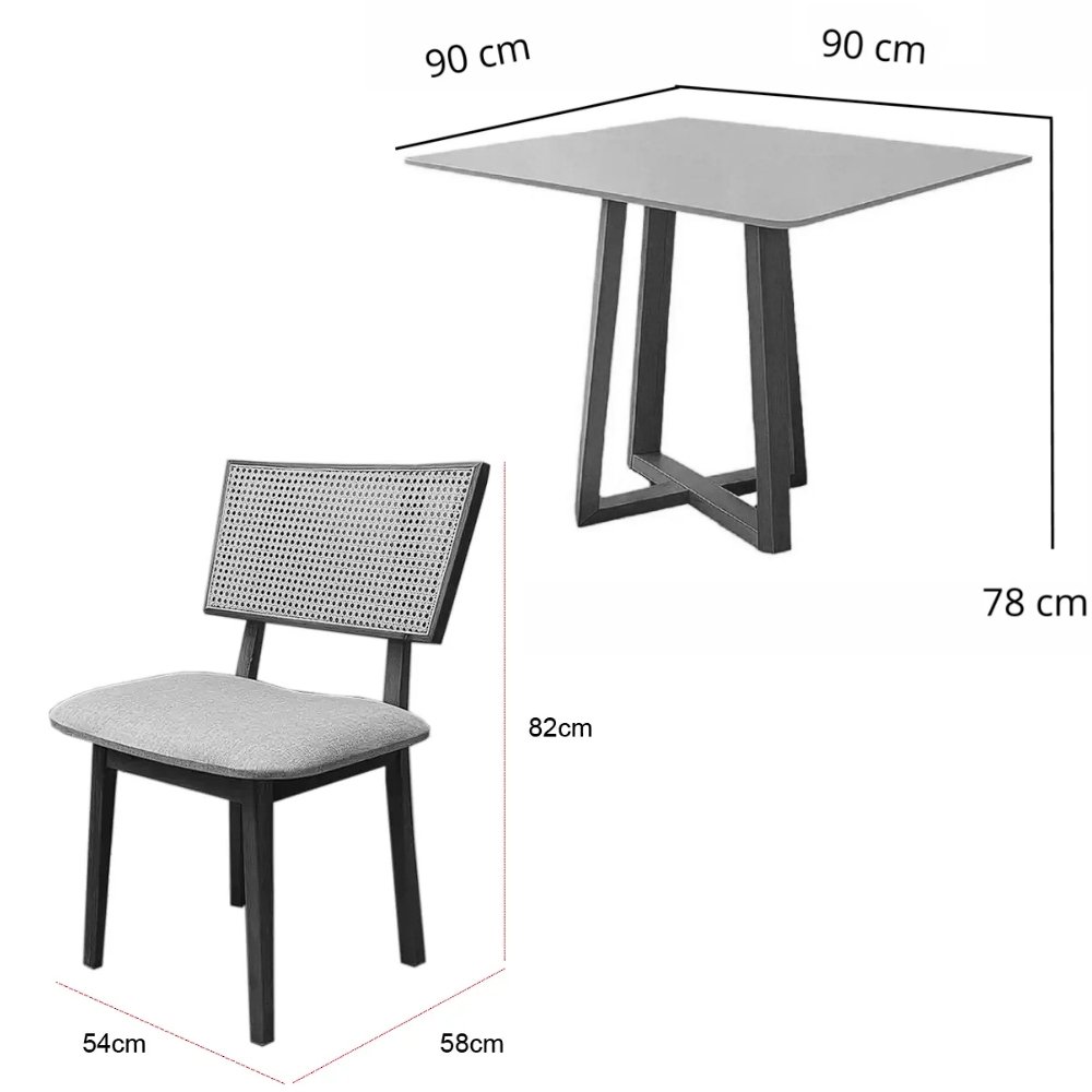 | Modelo | Mesa de Jantar Bali 90x90cm com Vidro e 4 Cadeiras Diamante em Linho |