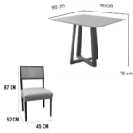 | Modelo | Mesa de Jantar Bali 90x90cm com Vidro e 4 Cadeiras Grecia em Linho |
