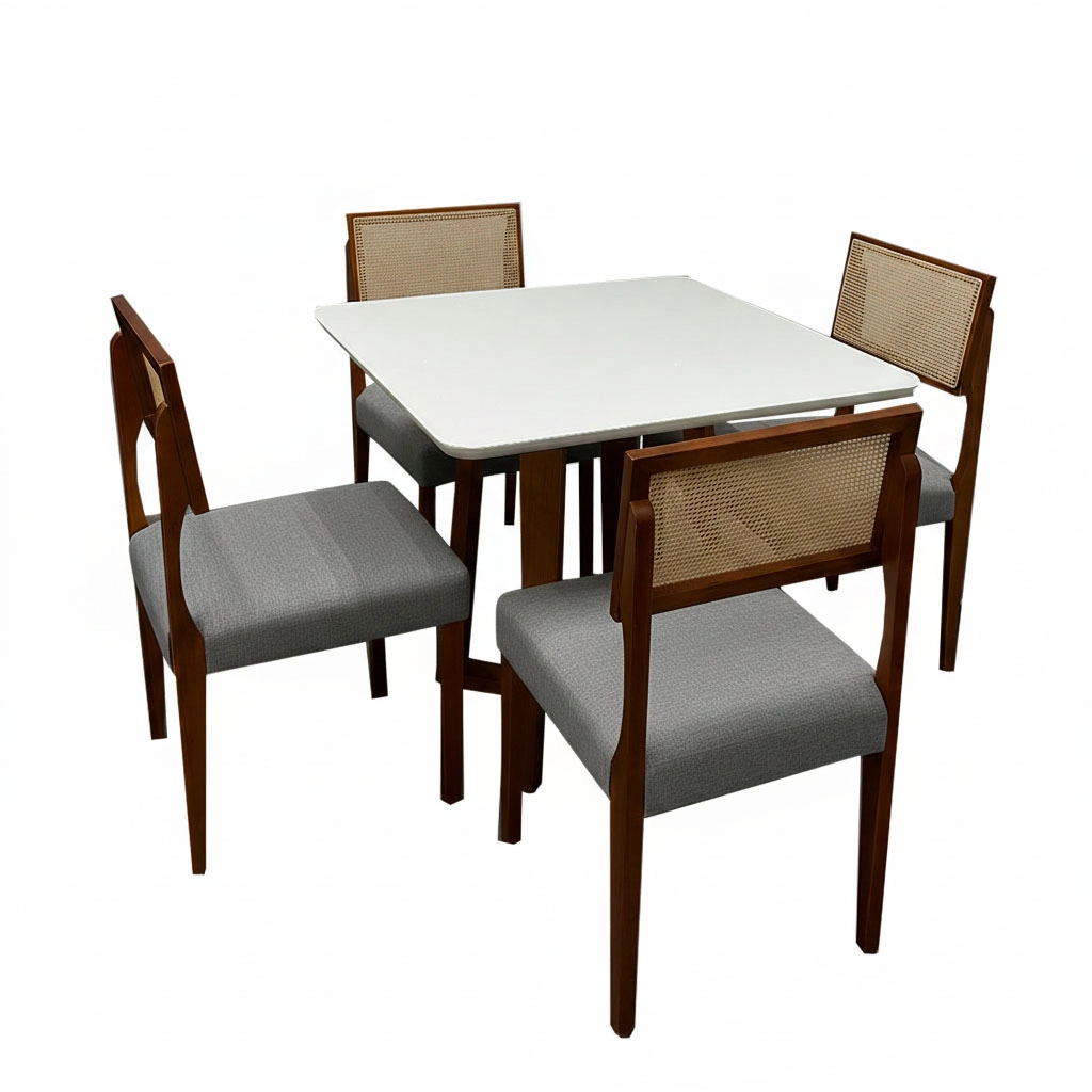 Mesa de Jantar Bali 90x90cm com Vidro e 4 Cadeiras Grecia em Linho Madeira Minas Plac