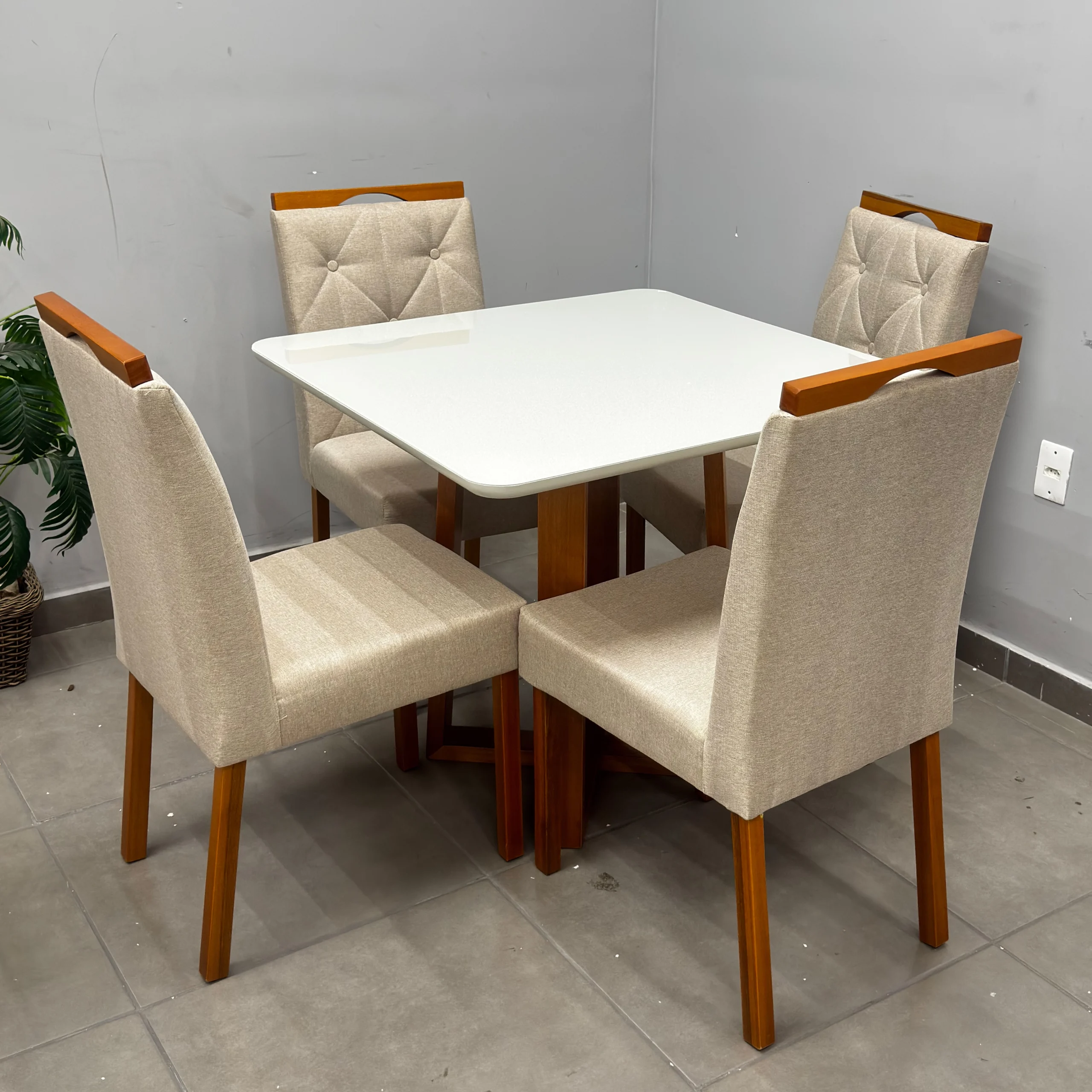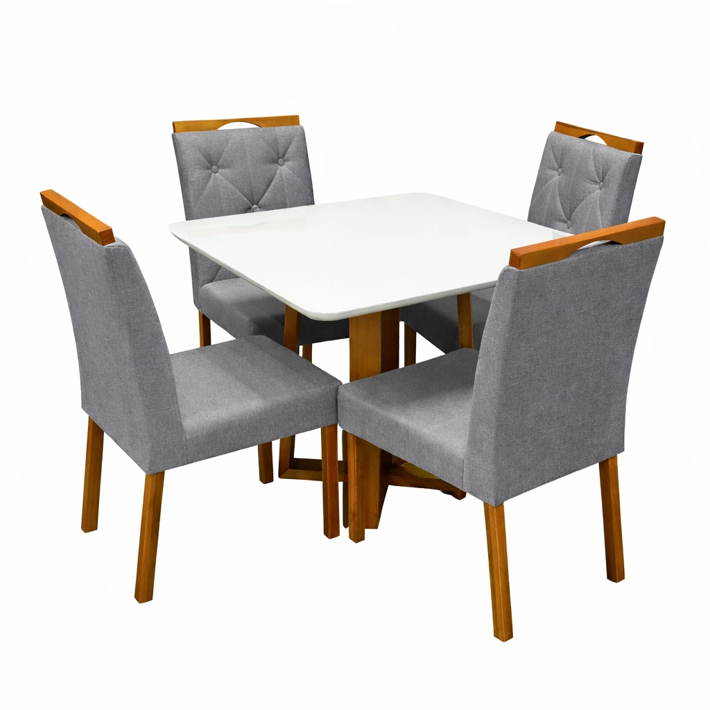 | Modelo | Mesa de Jantar Bali 90x90cm com Vidro e 4 Cadeiras Jasmim em Veludo Estofadas Minas Plac |