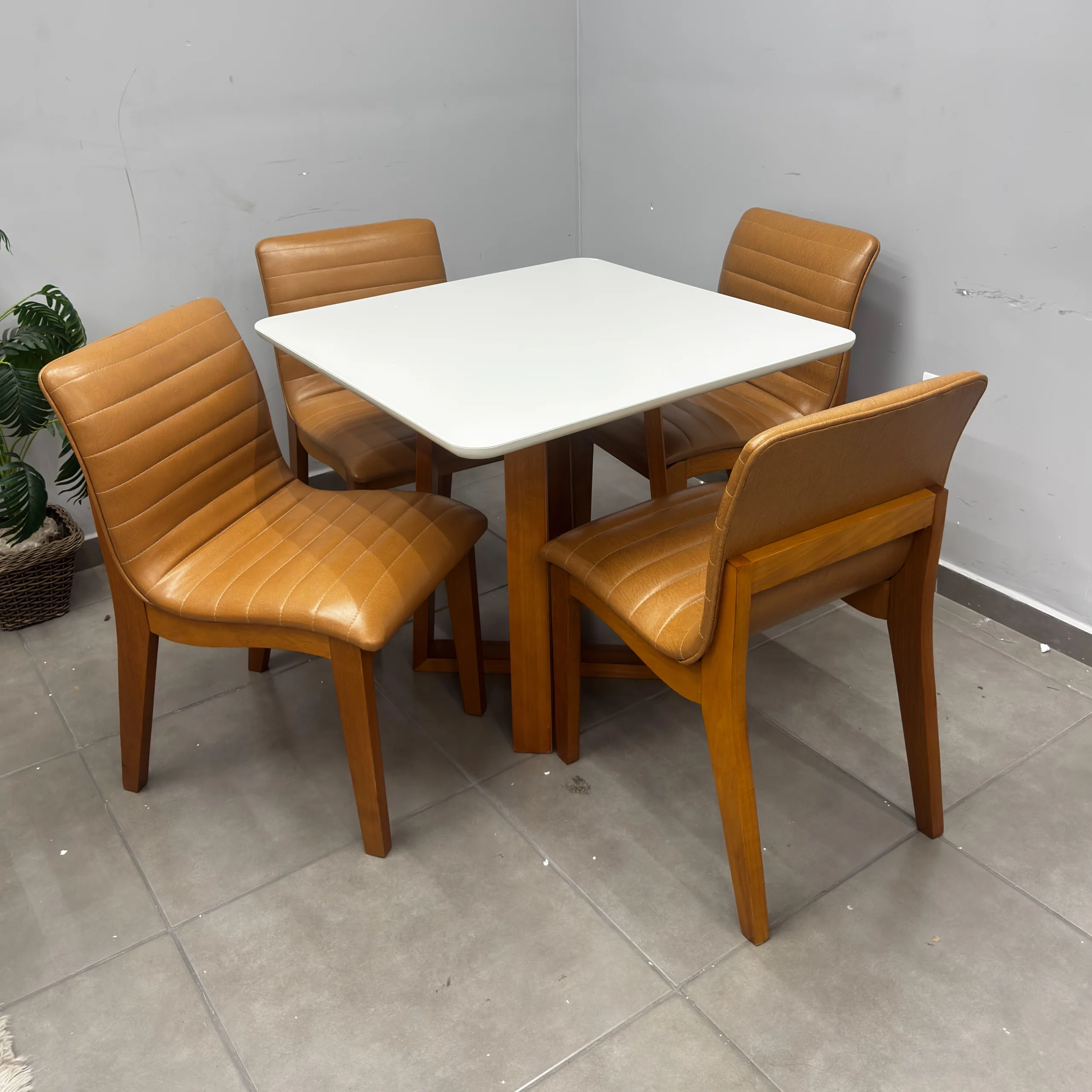 Mesa de Jantar Bali 90x90cm com Vidro e 4 Cadeiras Sofia em Corino Estofadas Minas Plac