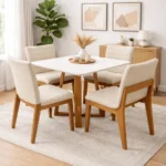 Seja o primeiro a avaliar “Mesa de Jantar Bali 90x90cm com Vidro e 4 Cadeiras Sofia em Linho Estofadas Minas Plac” Cancelar resposta