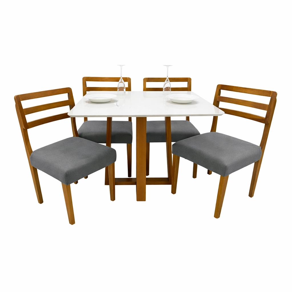 Mesa de Jantar Bali 90x90cm com Vidro e 4 Cadeiras Turquia em Linho Madeira Minas Plac