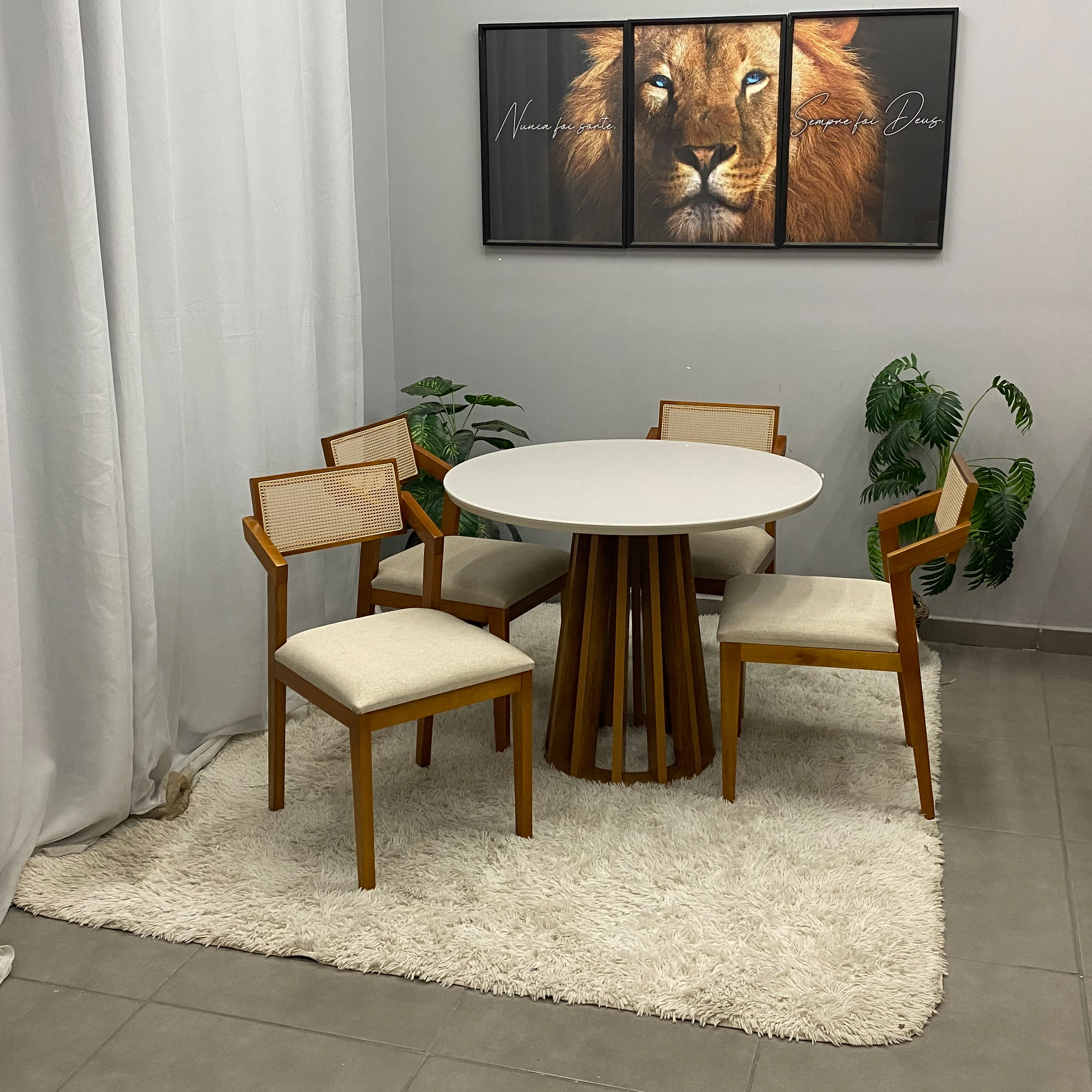 Seja o primeiro a avaliar “Mesa de Jantar Berlim 100cm Redonda com Vidro e 4 Cadeiras Berlim Hr em Linho Madeira Cel Móveis”