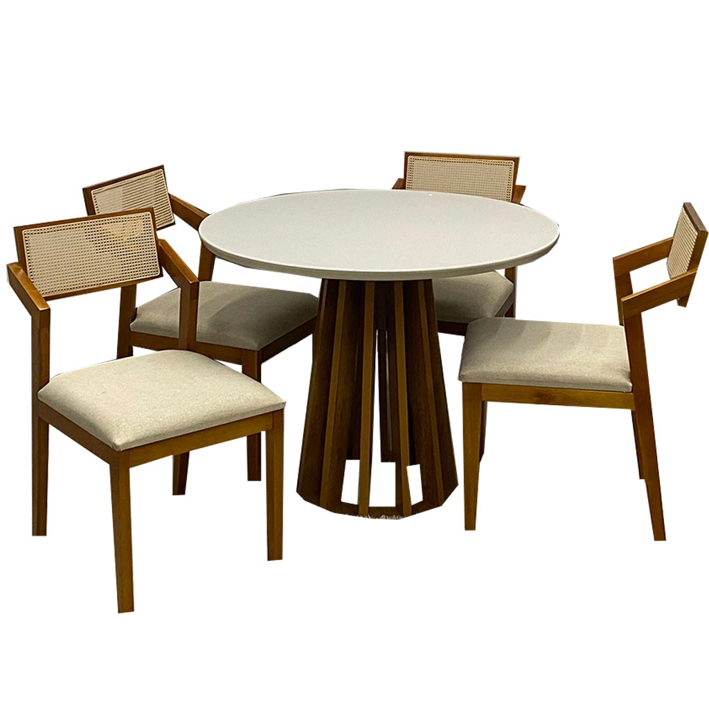Mesa de Jantar Berlim 100cm Redonda com Vidro e 4 Cadeiras Berlim HR em Linho Madeira Cel Móveis
