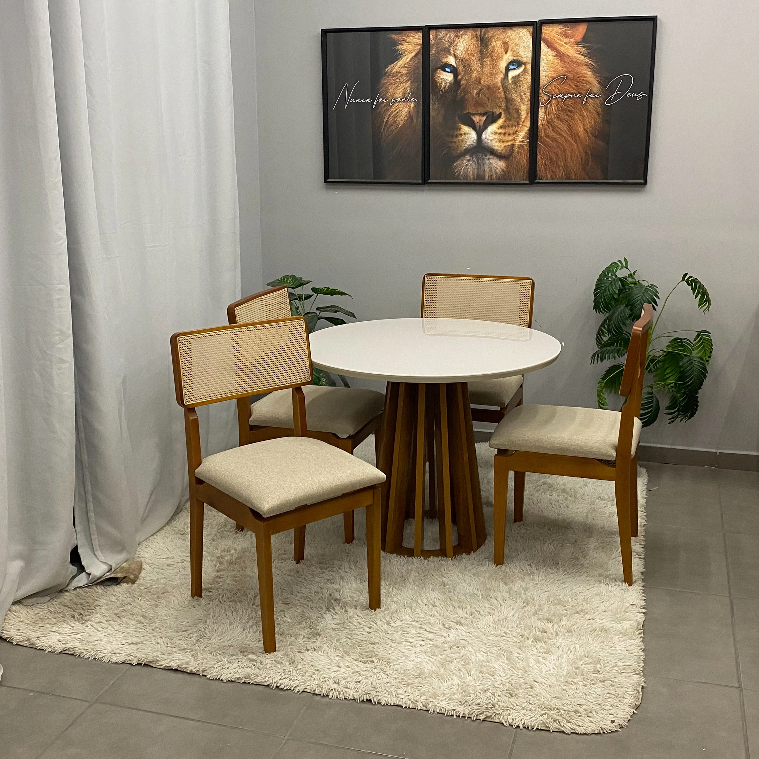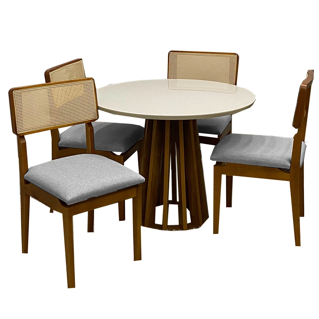 Seja o primeiro a avaliar “Mesa de Jantar Berlim 100cm Redonda com Vidro e 4 Cadeiras Canada em Linho Madeira Cel Móveis”