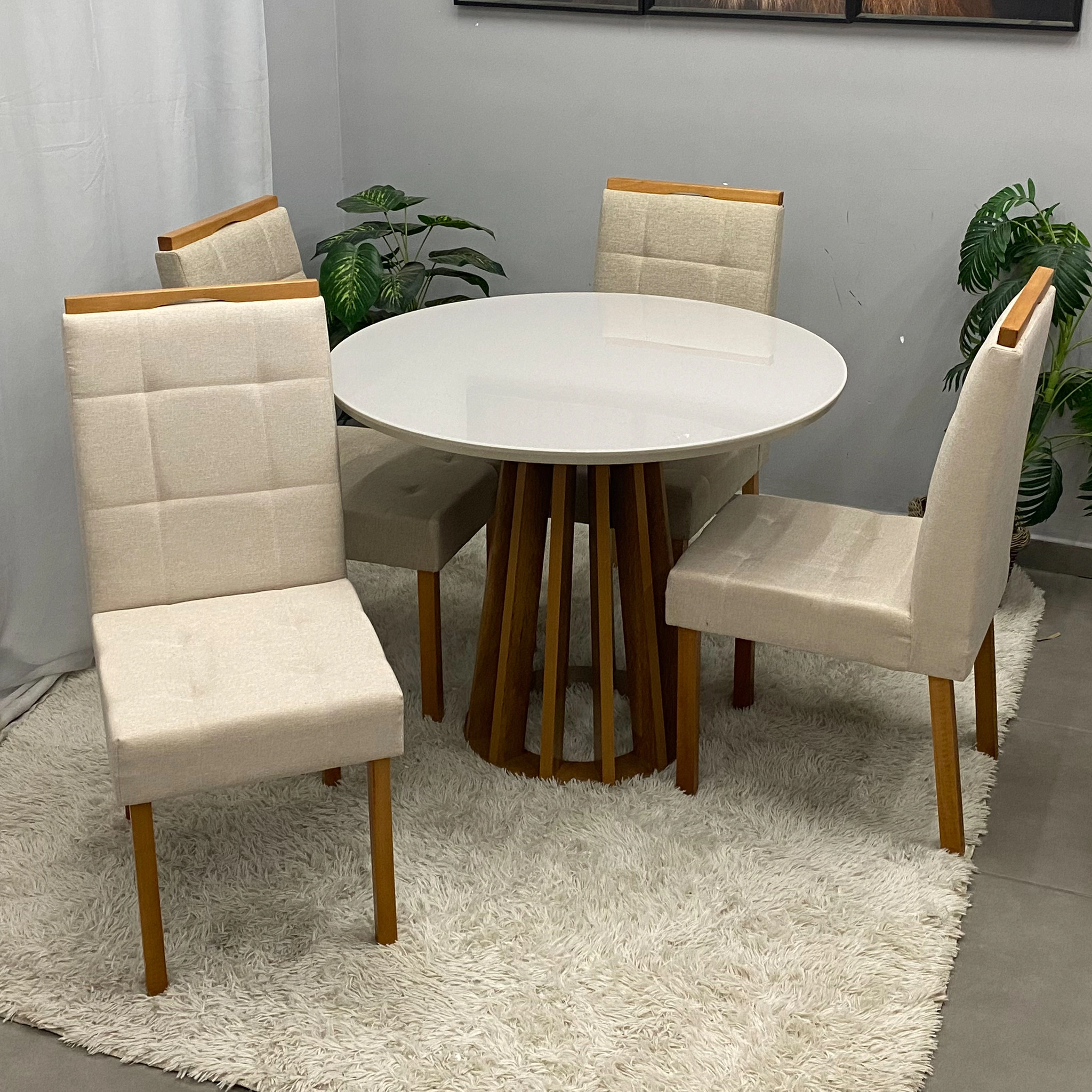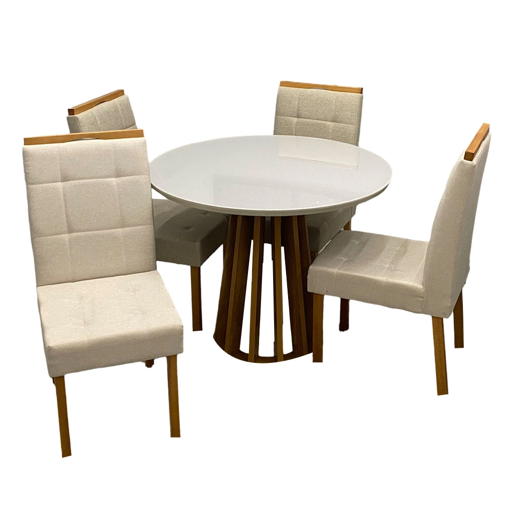 Mesa de Jantar Berlim 100cm Redonda com Vidro e 4 Cadeiras Giulia em Linho |