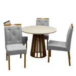 Seja o primeiro a avaliar “Mesa de Jantar Berlim 100cm Redonda com Vidro e 4 Cadeiras Jasmim em Linho Estofadas Cel Móveis”