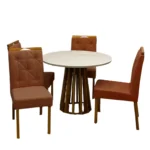 Mesa de Jantar Berlim 100cm Redonda com Vidro e 4 Cadeiras Jasmim em Veludo |