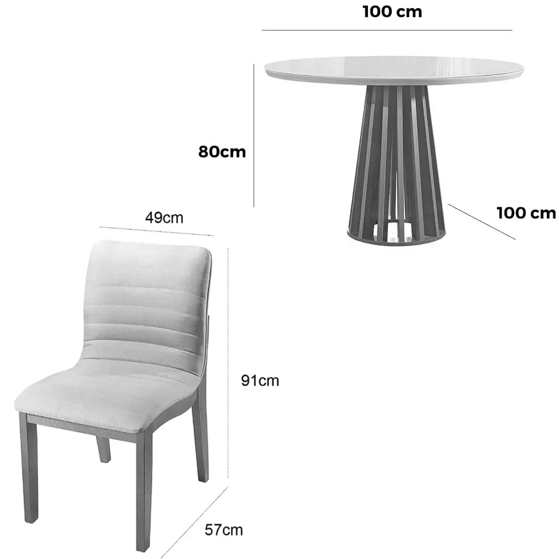 Mesa de Jantar Berlim 100cm Redonda com Vidro e 4 Cadeiras Sofia em Corino |