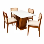 O conjunto acompanha 4 cadeiras, projetadas para proporcionar uma experiência de máximo conforto. Combinando robustez e sofisticação, este conjunto apresenta um acabamento refinado que harmoniza com diversos estilos de decoração, do clássico ao contemporâneo. É a peça central que faltava para renovar seu ambiente com qualidade superior e um visual impecável que impressiona as visitas.
