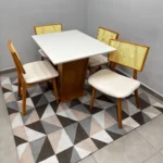 O conjunto acompanha 4 cadeiras, projetadas para proporcionar uma experiência de máximo conforto. Combinando robustez e sofisticação, este conjunto apresenta um acabamento refinado que harmoniza com diversos estilos de decoração, do clássico ao contemporâneo. É a peça central que faltava para renovar seu ambiente com qualidade superior e um visual impecável que impressiona as visitas.